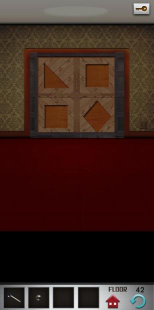 先点击右下角按钮开关,关掉灯,就可以看到门上提示的图案:左上角为三角形;右上角为方形;左下角为圆形;右下角为菱形(这点很考验视力)。然后打开两扇门后,按照上面门上提示的图形对应点击,就可过关。