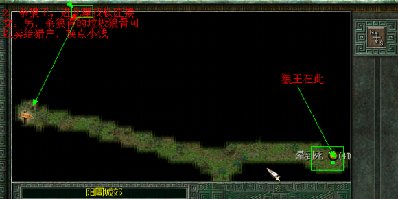 2.杀狼王:在阳周城郊入口处的小屋中和铁匠对话接任务,在地图右侧可找到狼王。杀死狼王后,找铁匠对话可选择一件装备。
