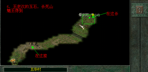 9.找王老汉丢失的玉石:在五华村找王老汉对话可接受任务,到地图右上角杀掉山魈王可得到王老汉丢失的玉石,回来交给他,可得到9颗还魂丹。