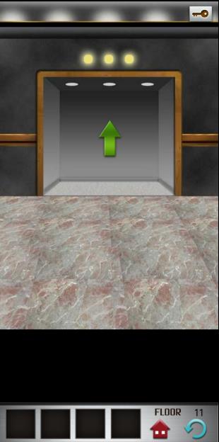 是依靠重力感应操作过关的,电梯门的正中间有个小孔,十字形的沟槽中有两颗小球。倾斜你的手机,将两个小球在小孔处重合,并保持不动的状态。直到门上方的三个灯都亮起,即可打开电梯门。 点击绿色箭头进入下一层。