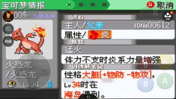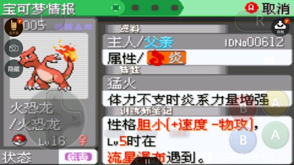 No.005火恐龙 小火龙16级进化或海岛第四岛洞窟。