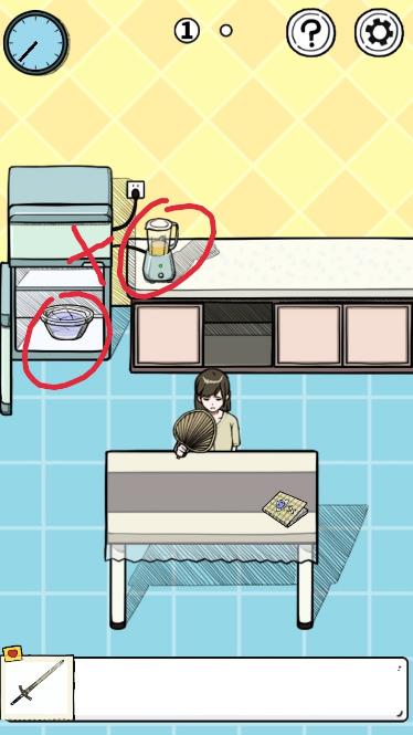 打开【厨房第二个柜子】,拿出【塑料盆】,来到【右边的后院】,【用盆捉到史莱姆】。取出【石中剑】,用剑挑落【树上的苹果】。回到【左边的厨房】,【把史莱姆放进冰箱,把苹果放进榨汁机】,【点一下榨汁机把苹果榨成汁】,【把冰镇后的史莱姆与苹果汁混合】,得到了奇怪的料理,拿给姐姐就好了