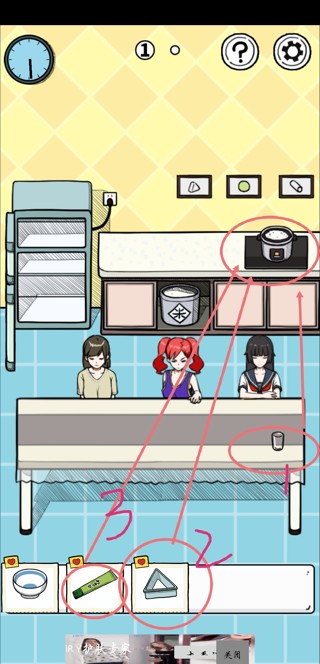 3.芥末放锅里,用碗盛出来,给第二页的小伙子,他会影分身和无影手做出第二个小姐姐要的饭团。