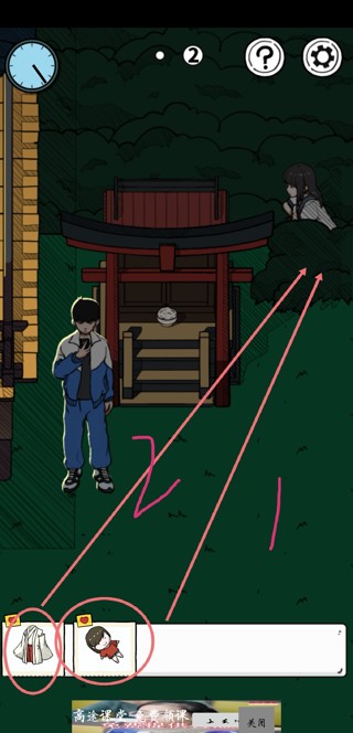 3.第一页红***姐下面有枚硬币,捡起来给第二页用来供奉神明的米饭,得到米饭。