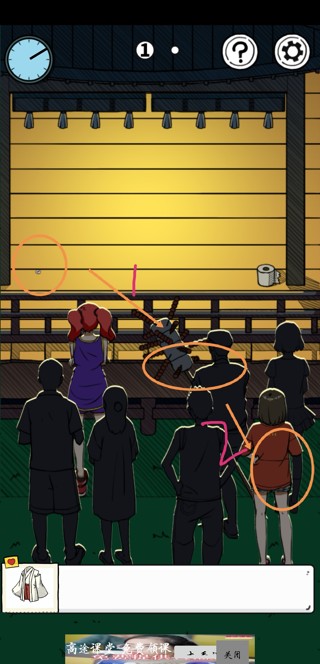 1.和服拿起来,下面有枚硬币,给糖葫芦得到糖葫芦,给红色衣服小姐姐得到玩偶。
