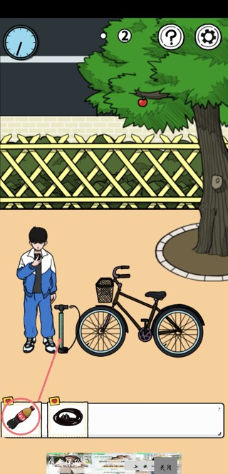 1.打气筒拿到第二页给自行车打气,然后自行车给骚年。