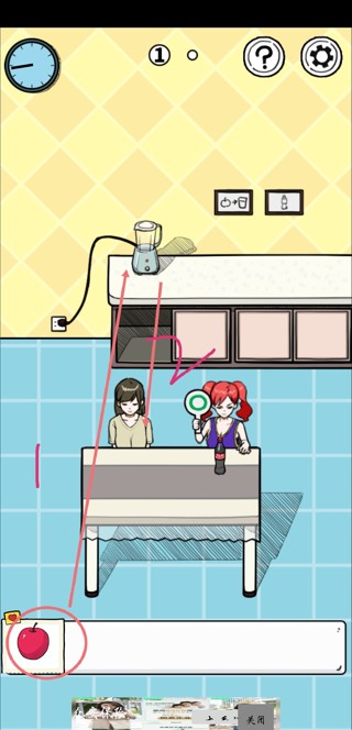 4.摸一下看书小姐姐的胸得到牛顿的书,放在第二页苹果下面,得到苹果。