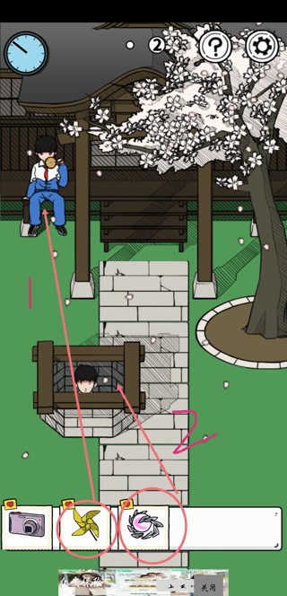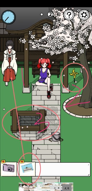 1.可乐拿到第二页的井里冰镇下,再给双马尾小姐姐,得到相机。