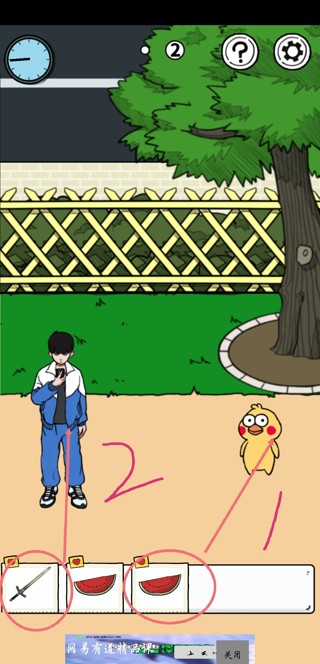 3.给小黄鸭吃一块,趁它吃撑了,骚年拿起剑灭了小黄鸭,得到死不瞑目的小黄鸭。