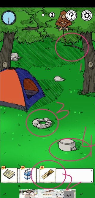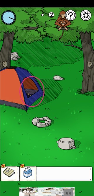 2.冰箱里的牛奶先拿起来,去第二页把帐篷里的钥匙拿来开第一页的柜子,得到打火机。
