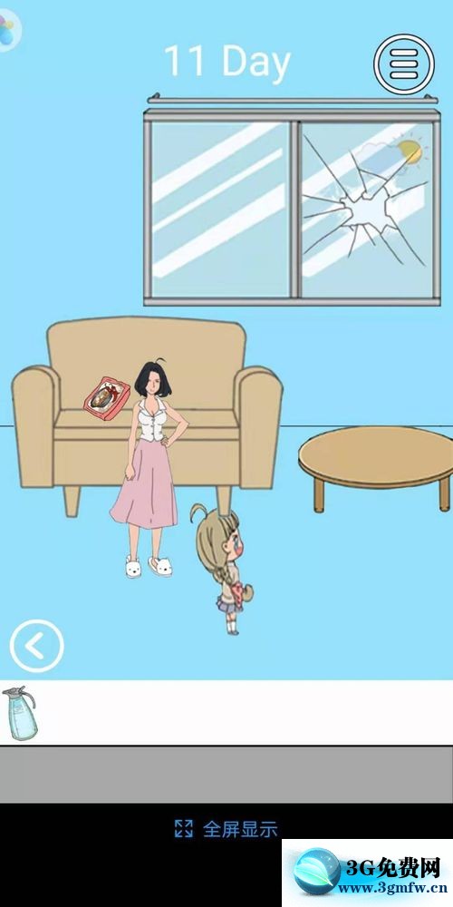 通过手机app进入脑力大比拼第十一关,打开橱柜没有东西,拿到水壶。