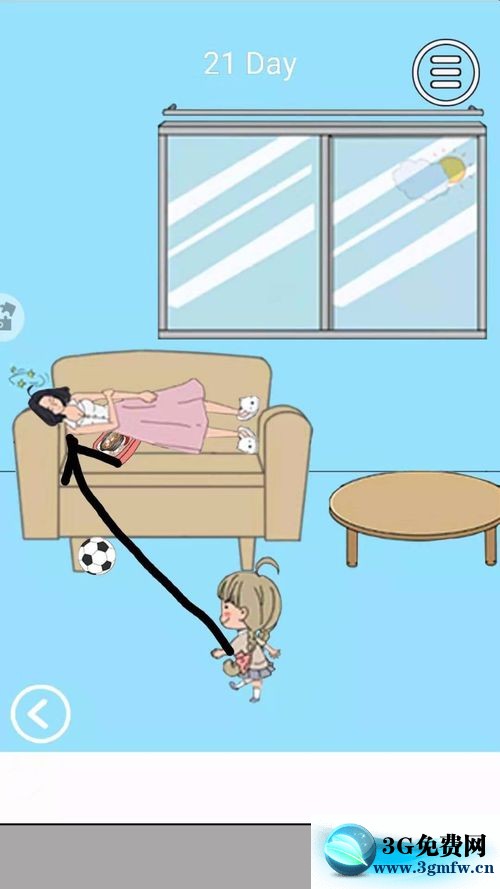 然后把足球拖放到小女孩的身后,切忌是身后不是身前噢!足球把妈妈打晕,如图所示