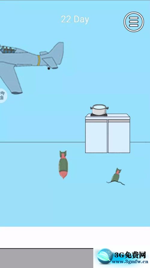 这关很好过,但是也最容易失败,进游戏后,等待5秒左右,会有一架飞机飞过,并投下两颗炸弹,如图所示