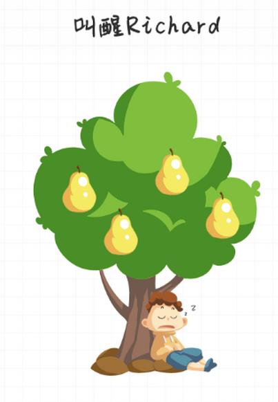 答案:摇晃手机,使树上的梨子掉下来砸到Richard。