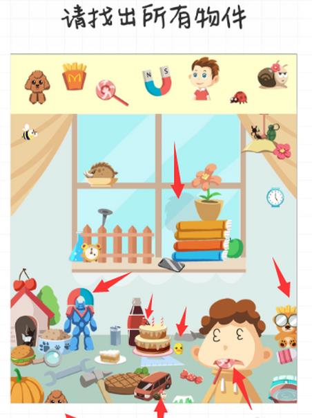 答案:如图显示,其他物品在图中都很容易,只有薯条是在右下角戴眼镜小熊的头顶上。
