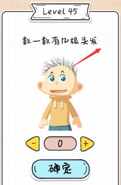 数一数有几根头发是《最强大脑急转弯》第45关的问题,很多网友不知道答案是什么,下面小编给大家带来最强大脑急转弯第45关攻略。 问题:数一数有几根头发? 答案:先把假发拿掉,发现只有4根头发。 老友网www.andlaou.com免费为你分享