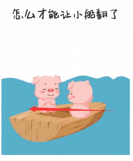 答案:手指往左滑,就能让右边小猪变瘦,翻船成功。