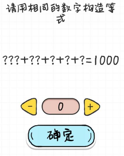 答案:看到这条公式,就想到了8,888+88+8+8+8=1000。
