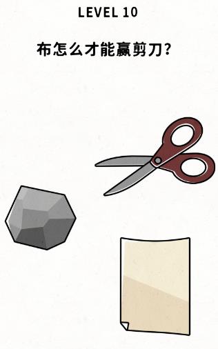 布怎么才能赢剪刀是《脑力谜题》第10关的问题,很多网友不知道答案是什么,下面小编给大家带来脑力谜题第10关攻略。 问题:布怎么才能赢剪刀? 答案:把纸拖到石头上,把石头拖到剪刀上。 老友网www.andlaou.com免费为你分享