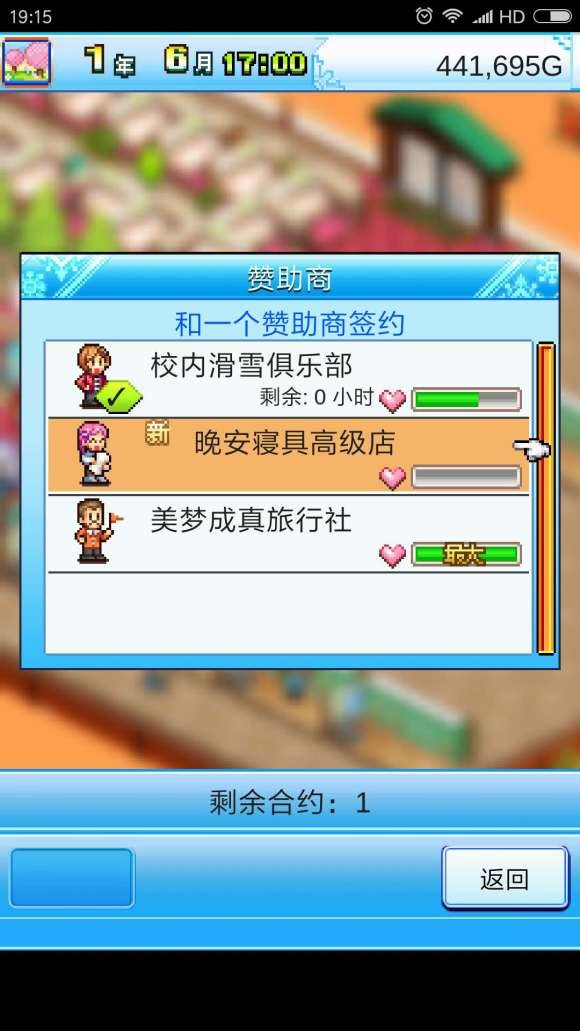 第一个赞助商满了送咖啡店,第二个一半友好度送可丽饼,记得选第三个赞助商