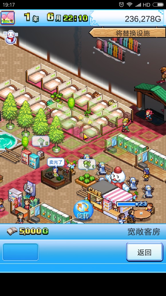 把客房全移到这边来,放上3种加成植物,没有的话随便放些花束什么代替也可以,不要浪费高魅力的设施,因为客房平均一个月都不会周转一个人