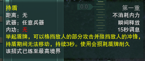 持盾(玩家动态技能,使用后可以抵挡狼牙精锐的冲锋,以及P3阶段BOSS的突袭。)丢盾(玩家动态技能,使用后可将剩余未使用的盾牌丢在地上,待其他队友拾取。)狼牙刀盾兵持盾防御(通道技能,需要从其背后才能打断,每次打断减少部分防御时间,我的数据在刀盾兵释放这个技能的时候会标记如意,可以在适当时候选择如意来找到需要打断的刀盾兵,每次只会有1个刀盾兵释放)