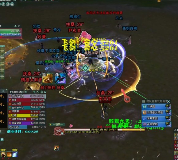 泉映千山·扶桑(随机点3/6/?个人,获得扶桑BUFF,持续掉血,可驱散,驱散的时候会对范围造成AOE,内功伤害,需要出人群奶妈单独驱散,或者抱团山河)