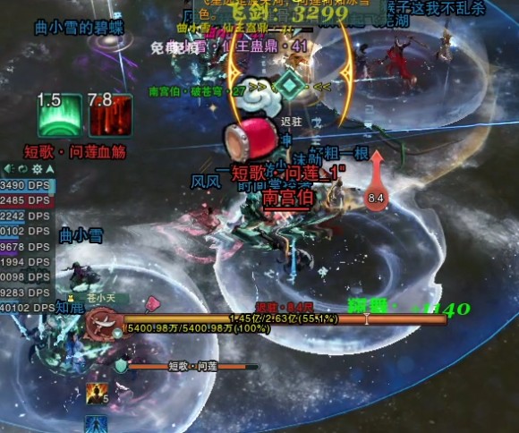 短歌·万劫(点名5/25/?个玩家获得万劫BUFF,BOSS上天,释放一次正读条后,开始倒读条持续造成高额伤害,外功伤害,正读条结束的那一下最疼,处理办法,提前挂扶摇,在正读条快结束的时候起跳,空中二段跳小轻功再二段跳落地,可以参考敖龙岛老一锈铁钩锁的处理方法)