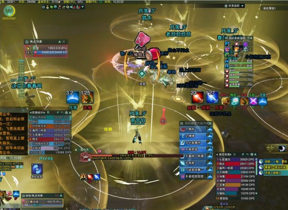 升级版月落(所有看破玩家分散站开即可引导月落,月落BUFF结算的时候会对范围圈内造成大量伤害,排月落不能站重合位置,建议远程处理)