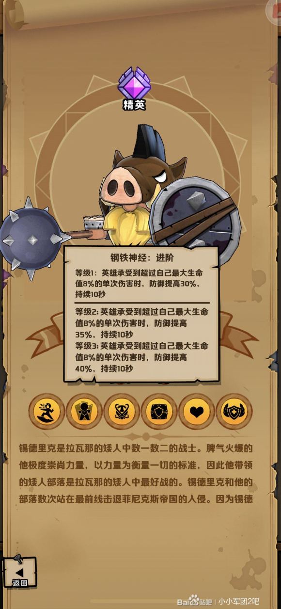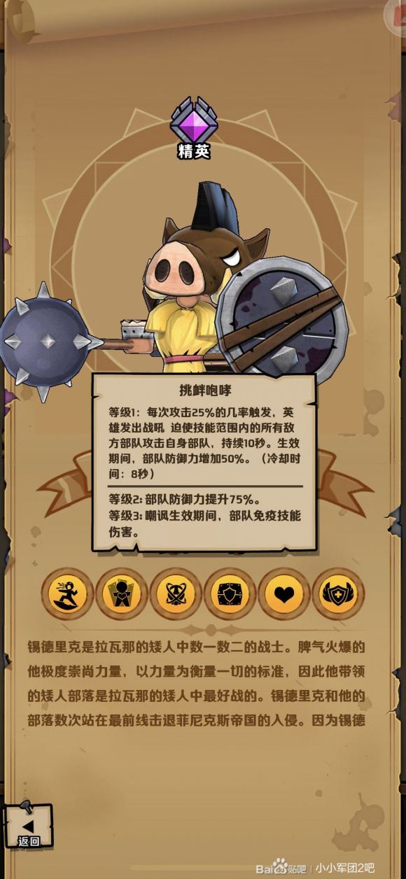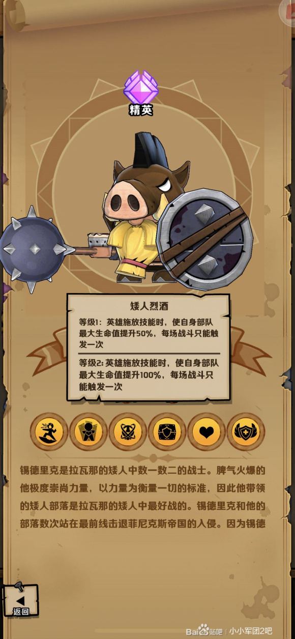 总结:少有的技能触发召唤小兵助阵的英雄,而且小兵存活的越多自身所率领的部队越强的英雄。作为一个副T是合格的,尤其是对阵主线每四关关底的精英小兵。给他8分是后期可以强化小兵,所以他后期应该也能用的上。