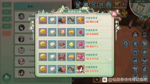 奇侠好感度食物