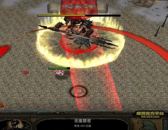 BOSS角色脚底出现红圈,随后出现天之锁特效并造成眩晕;