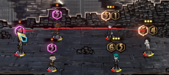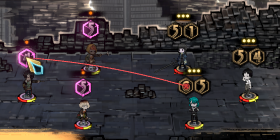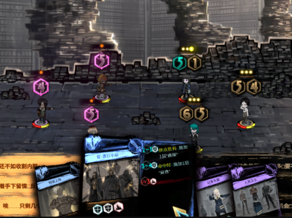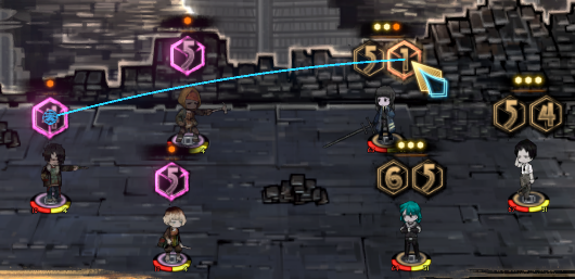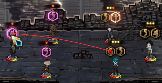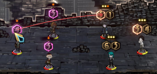 这个时候如果使用点数为5的骰子去交战,可以看到敌方攻击目标被改变了,也就是说速度骰子点数若大于敌方点数就可以改变敌方交战目标。值得注意的是,如果点数和敌方相同上述操作是无效的。