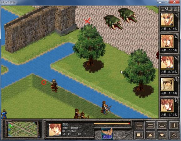 本局最大的难点是红叉处有5个一起行动的法师。法师的发球是可以直接打到坡上的。如果战士出去,前面的敌方甲兵就会阻碍我方行动,我方2个法球就全灭了。所以关键是使用侦查兵的走位来消耗掉法师的蓝,其他可轻松过关。