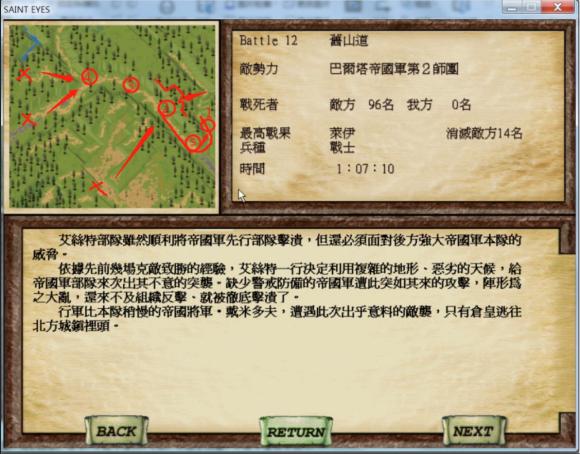 起步从s起始点,紧急撤离到1点。迎战北方2波兵,然后再开始迎接主道上的2波兵,第三波是法师,要注意。基本打过这波,后面注意弓箭手即可。(另,本波法师有2个)