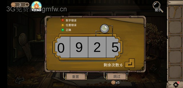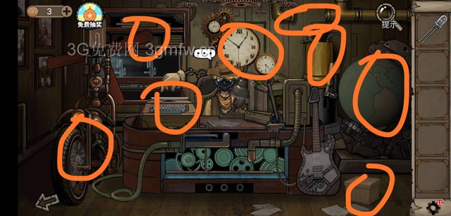 按键放打印机上,得到齿轮后面我又不会了,但我知道后面那个钟和3号房的留声机有关系就行了,来来去去159我瞎填总是可以的吧