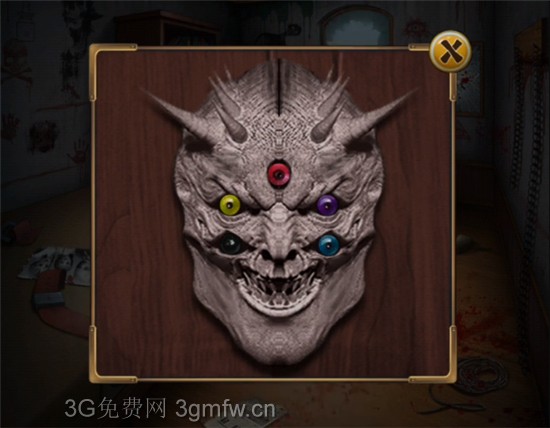 返回二楼过道,使用转盘打开铁链进入亨利卧室。拿到桌子上的放大镜,可以对破损镜子下方的眼睛使用,得到密码,用密码打开抽屉,得到一个红色的眼睛,这个是下去的兄弟的吗?当然不是,而是柜子侧面鬼怪脑门上的。