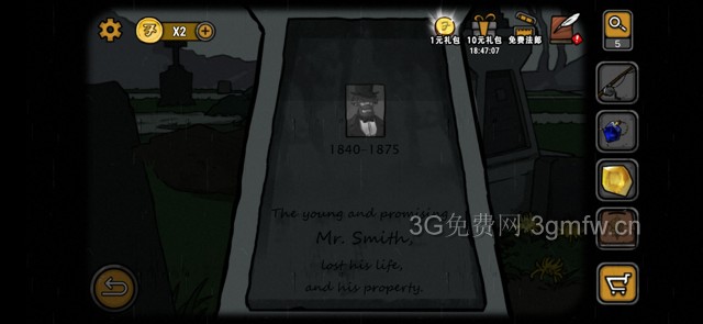顺手抄起屋边的铲子我就冲进了墓园,其中一个墓碑引起了我的注意,对照墓碑上的信息和手中的族谱,我知道了这个人就是史密斯家族的第三代传人空条承太郎,啊不对,是史密斯·芥末丝(Smith. James)。果然,在他的棺材上输入了芥末丝三个大字,棺材顿时就打开了。