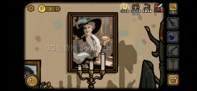 房间里的另一幅画也引得我促足长观,还拿出了我刚才在门口左侧抽屉里翻出的放大镜来仔细研究,那茶杯上写着5318,以此打开了画下方的抽屉,拿到房门钥匙将德芙放在门口的地上,打开房门,使用德芙球捕捉小少爷。小少爷开心和我成为了好朋友,并把衣服脱给了我穿,我十分的感动出了房间下了楼,发现皮特医生正在楼梯下的房间看病,我不由的冲了进去,恳求他救救我的好友柯尔。一旁的瓦尔伯爵也让医生赶紧回去,同时还招待我参加晚宴回音act3!这个瓦尔伯爵莫不是个hentai?我悠悠转醒时,却发现我已经被绑了双手关在杂物间里,妈妈常说女孩子一个人在外面要保护好自己,我怎么就没注意呢!好在这绳子也难以困得住我,不多时,我便挣脱了开来,从地上找到桶子和绳子,门口右上拿到蜡烛,扳下门口左侧烛台,进入身后打开的密室,里面有三个牢房。妈耶!监禁play,这伯爵果然是个hentai点亮牢门边的烛光,地面上的石头被照亮。捡起石头同桶子、绳子一起做成机关,回到杂物间将机关架在房梁上,计划通时刻到了,三下五除二地放倒了守卫再次回头,三个牢房里,左侧牢房的人已经死了;右侧牢房的人待在阴影之中;而中间牢房的人竟是个小女孩,原来这伯爵竟买卖人口,牟取暴利,怒由心起的我舌绽莲花wdnmd时间紧迫,我赶忙去伯爵房间寻找钥匙,却在门外听见伯爵与其手下刀疤脸在交谈,正巧似有人打上门来,伯爵慌忙出逃,我借机躲进身后阴影带伯爵走后溜进房间在靠门口的花瓶里拿到密码图,按数字顺序链接后数三角形数量,得出密码2431,打开旁边书架右上角的盒子
