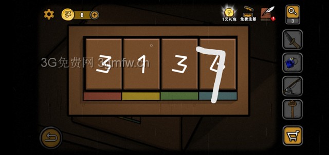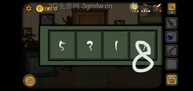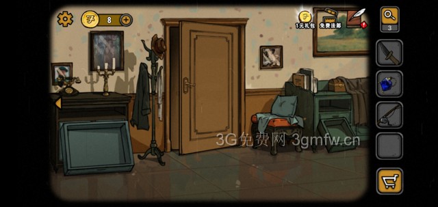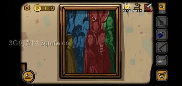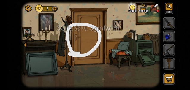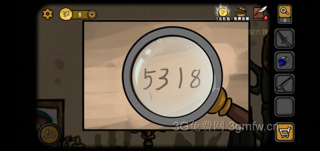 进窗户 3.进去房间了! 左下抽屉有放大镜?,看右图,得到密码5318,输入右边抽屉 拿到钥匙?,开门 但是只能观察 左边房间,地上抽屉把手捡起来,打开柜子 不同颜色的人头数代表密码 第二个抽屉把手get!