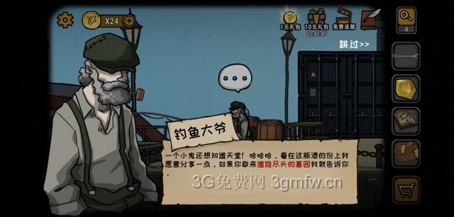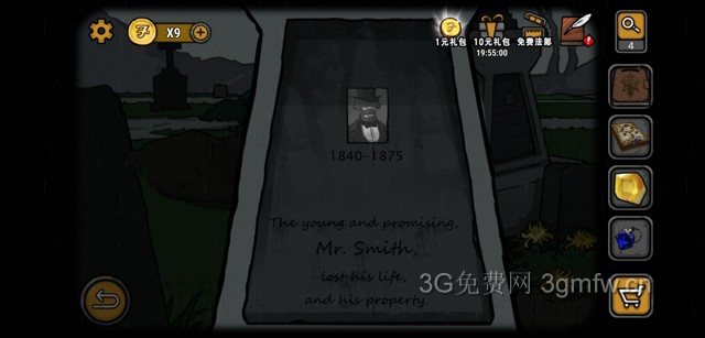 直奔向墓地找到老大爷,对话后给个钥匙要咱们去刨坟,抄起旁边的铁锹就去坟头溜达去。
