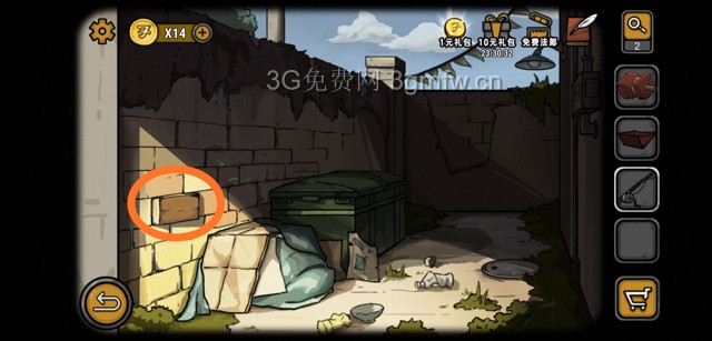 你问我他家在哪里?大概就是开局被打的地方了吧~右拐后点击墙上凸起部分。