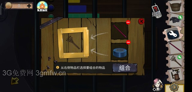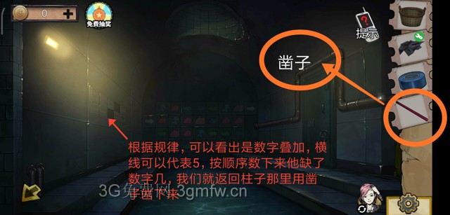 女方用密码解开车库里面的谜题,车库外需要用铁钩勾起