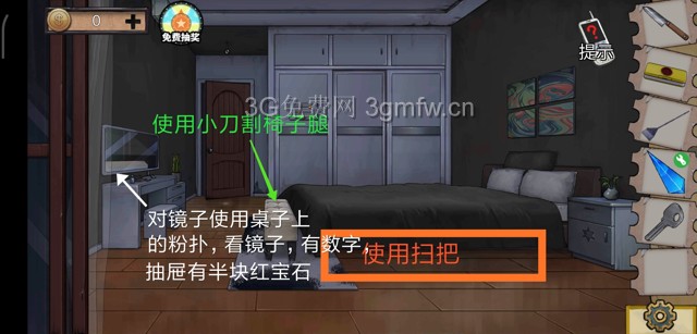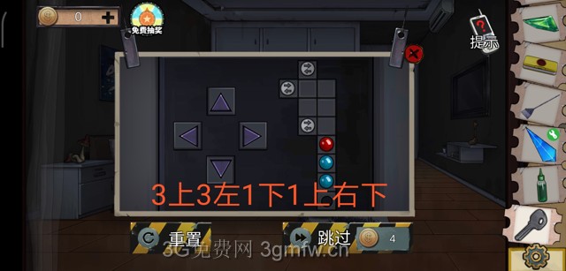 得到《房间衣柜密码》得到《灯泡》《棋子》隔壁房间使用《灯泡》庭院柜子使用《棋子》