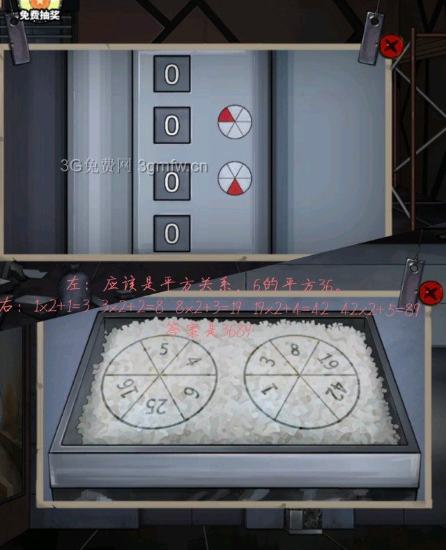 最后一道谜题线索根据电话得知下一图的数字根据二图得知数字顺序即可开门