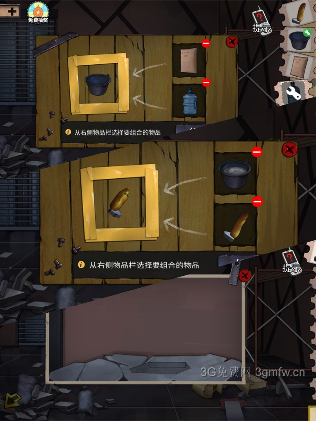 得到《棍子》《水泥》使用《棍子》得到《钥匙》