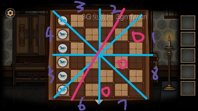 去掉1,5区域,棋子放置位置最终只有一种可能,就不再描述尝试过程。