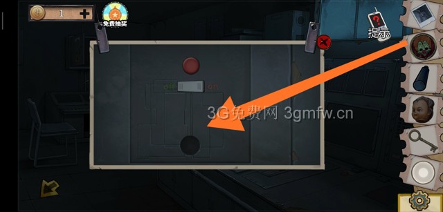 休息室桌子下面的谜题(先按开关,然后跟着左边小人的方向按,成功两次即可)