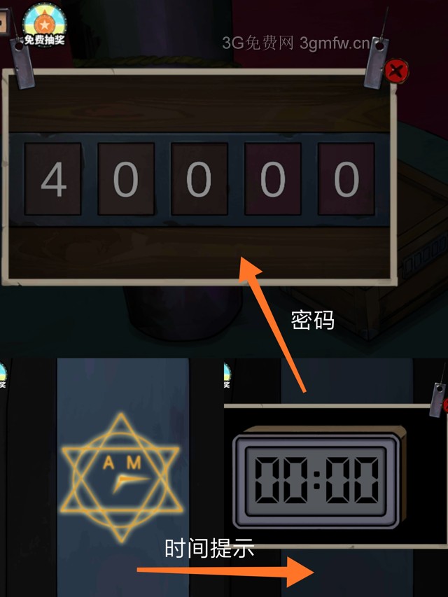 出去后要抬头看摩天轮,可以得到开!!!鬼屋门的提示