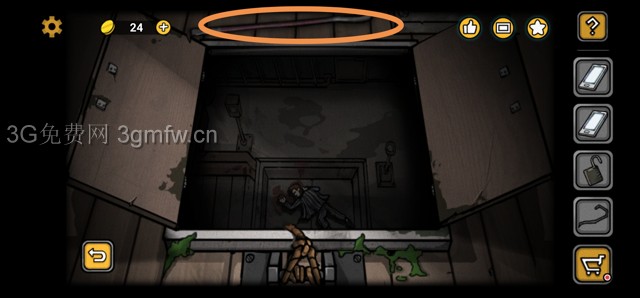 出大门后,手电筒光荣地退休了(不是核能手电筒差评),点击前方塌陷的木板,获得扳手。